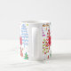 This cute and cheerful personalised holiday coffee mg makes a unique gift. The design features a whimsical pattern of Christmas trees in red, green, pink and blue with your name on a red rectangle for you to customise. illustrated by world renowned artist Tim Coffey.