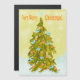 Cute Christmas tree with blue birds, winter day background, watercolor painting.
