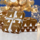 Cute wrapping paper with christmas trees pattern on brown graphic glitter background. Easy customise it!