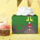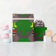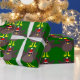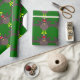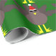 This awesome wrapping paper features a funny cartoon of a Christmas turkey with big black eyes, a small yellow beak and tail feathers sticking up. The feet are facing in opposite directions making the turkey look clumsy. The turkey is wearing a red and white Santa hat and is ready for Christmas.