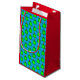 This awesome gift bag features a cute Christmas Sea Turtle with a green shell and 4 legs. The turtle is wearing a festive red and white hat. It has cute black and white eyes and a tiny green tail. The outer section of the shell is decorated with alternating holly leaves and berries and pretty red poinsettia flowers.