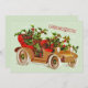 Cute Christmas Vintage Car Holly Snow Sage Invitation