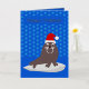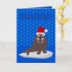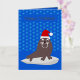 This awesome Foil Christmas card features a graphic image of a cute little Christmas Walrus. The Walrus has brown fur with big black eyes and white tusks. It is sitting on an iceberg in the middle of the ocean and wearing a red and white festive hat. The walrus is surrounded by pretty octagonal blue snowflakes falling down all around it. There is custom text inside so you can personalise this card. The custom text on the front is in beautiful silver foil.