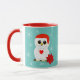 Cute Christmas white owl and snowflakes on teal Mug.