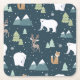 Cute Christmas Winter Animals Rustic Pattern Square Paper Coaster
