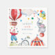Cute circus carnival birthday party napkins for ANY AGE! This napkin showcases cute circus animals, air balloons, sweets, ribbons, festive bunting flags, colourful confetti and much much more.