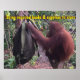 Cute school classroom poster for teachers to remind students to bring all class supplies and books with them. Reinforce good study habits with this sweet orangutan baby photo. The artist thought her backpack might be safe hung on a broken tree limb in the jungle of Kalimantan (island of Borneo.) But orangutans are very intelligent great apes, and this baby wanted hat wonderful new toy. The artist volunteers with orangutan orphan rescue and rehabilitation at the Orangutan foundation international Care Centre and donates her profits to try and save this endangered species from extinction.