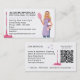 This cleaning business card features a charming illustrated housekeeper in a stylish apron, holding a feather duster. Designed for professional cleaners, housekeepers, and cleaning companies, it includes space for contact details, services, and a QR code for easy access to pricing or bookings. The soft purple and pink colour scheme adds a warm, welcoming touch, making it a friendly yet professional networking tool.
