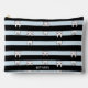 Quirky cute white cats climbing on black stripes personalised pouch. You can change the colour of the light blue stripes.