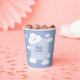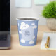 Cute baby shower celebration paper party cups design features whimsical clouds on a blue sky background with the mother-to-be on cloud nine. Customise all party details in stylish blue font to make it your own. Fun and cheerful cup is part of an adorable gender neutral themed collection. Don’t miss out on the fun - order yours today!