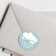 Cute stickers features graphic rain clouds and classic typography overlaying dusty blue sticker.