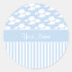 Cute modern white clouds and blue and white stripes patterns with a pretty blue strip for you to personalise.
