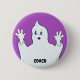 Cute Halloween coach Ginger ghost button. This cute Ginger ghost is on blue background.