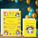 The invitation background is a blend of soft purples and orange. Below that, there’s space to fill in all the party details, like the date, time, and location, surrounded by cute little coffee mugs and friendly ghost illustrations. This invite is the perfect mix of spooky fun and cosy cuteness, setting the tone for a birthday party full of smiles, laughter, and playful ghostly charm!