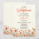 Celebrate your little sunshine with this sweet “Our Little Wildflower” 1st birthday invitation, set on a soft yellow background that feels warm and joyful. A charming border of cute wildflowers in soft orange and yellow blooms along the bottom of the card, accented with buzzing bees and a delicate butterfly. The word “Wildflower” is written in a beautiful script font in a coordinating floral color, while the party details are styled in a mix of elegant script and classic serif fonts for a balanced, whimsical look. The design is easy to customize with your own celebration details, and the back of the card features the same floral artwork with a lovely string of butterflies fluttering up from the flowers for a magical finishing touch.