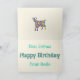Psychedelic goat on things. Goats love to climb onto things, so why not take that concept a little further and add your friend's or family's name and they can become standing room for this funny colorful goat. This quirky card is easy to customize, just use the template on the right to change the names by replacing Joshua with another name or greetings from Happy Birthday to any other greeting to create a truly personalized card for any occasion. You can even resize the images and change the text and background colors to create a unique card you won't find on the high street. Multicoloured goat design by artist Catherine Sweetman.