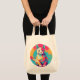 The printing came out very well, better than I had anticipated. The natural color fabric is sturdy with strong seams and comfortable handles. This tote fits easily over my shoulder. As it is filled, the bottom flattens out--very cool! I would buy this product again. This grocery tote holds a lot of groceries! The image quality was very good. The colors were a little darker than I had expected. The darkness may have been due to printing on a natural color fabric rather than on white. The cat design is attractively centered on the tote. The spirit of the design is very lively, just as it appears on the Zazzle website.