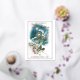 Beautiful, unique, classic, trendy, pretty and decorative Christmas greeting card on a vintage teal blue coloured background, with cute birds in a wintery snow landscape. With room to customise or personalise with your family name and current year to date. And a customisable season greeting poem on the backside of the card, including your return address, city, zipcode and state.