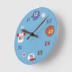 A clock with a cute and colourful baseball theme! It has a baseball helmet, baseball, mitt, cap, star and baseball tee arranged in various spots. Great as a decorative piece for a boys bedroom if it is a blue colour theme or if the boy adores baseball!