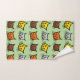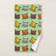 A pretty bath towel set that features a cute feline themed pattern design of yellow, orange, grey and brown cat face illustrations against a custom colour background. You can customise the towels individually by clicking the “personalise” or “customise” button to select the desired background colour.
