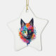 Cute Colourful Cat Ornament.Adorable and cute, This tiger tabby shows your Cat lovers pride . Rainbow flowers and paint splatters design for the vintage retro feel for Holidays and any time of year. Cat moms and Cat Dads alert! Kitty Core Forever!