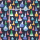 Colourful chemistry themed fabric with lab flasks illustrations and cute dots on a navy blue background. If you are a chemist, chemistry student or teacher and you like crafts this fabric will give you an opportunity to bring together your two interests.