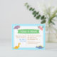 It is time for a roaring good time starting with these cute and colourful dinosaur invitations! This children friendly invite comes cartoon dinosaurs drawn in a cute manner with big round eyes. They include a yellow Brachiosaurus with orange stripes, a purple Triceratops with pink horns, a blue Stegosaurus with yellow spikes and a pink Pterodactylus. Background of light blue and white slanted lines. A dinosaur themed party is a great theme for kids!