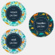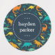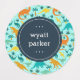 Label your kids' school supplies and other items with these cute dinosaur themed round name labels in aqua, navy, and light blue. Created especially for dino-loving kids, this colourful design features yellow, orange, and mint green dinosaur illustrations. Personalise with up to three different names.