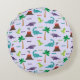 Cute Colourful Dinosaurs and Volcanos Round Cushion