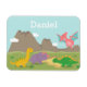 A cute and colourful dinosaur magnet which kids can use to attach their dinosaur drawings to the fridge. It comes with cartoon dinosaurs, a yellow Brachiosaurus, a purple Triceratops, a green Stegosaurus and a pink Pterodactylus. Background of mountains and clouds. This attractive design is great for kids who love Jurassic, prehistoric or dinosaur themes. Personalise with child's name to make it extra special!