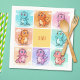 These vibrant personalised napkins feature chubby, funny baby dragons in playful poses. Designed in a colourful cartoon style, these adorable dragon doodles come in bright hues of blue, orange, pink, and purple, with tiny wings.