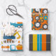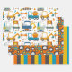 Cute Colourful Dumper Truck Digger Pattern Wrapping Paper Sheets from Ricaso - featuring blue and orange dumper trucks and diggers as well as a coordinating stripped pattern paper