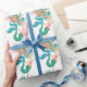 Cute and colourful floral mermaid in a seamless pattern over a white background.
