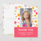 Cute Colourful Flowers Birthday Kids Girl Photo Postcard. Cute pink birthday thank you postcard for your friends and family. Upload your photo and personalise the card with your name and text. The card has colourful hand drawn flowers. Great as thank you card for girls.