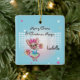 This is a lovely ornament, and great that you personalise the back with details of birthday, weight, etc.. My only tiny disappointment is the "My First" doesn't stand out very well on the background. More than happy with the printing of the photo and the writing on the back.