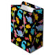 Colours of this fun design: black, purple, green, pink, yellow, blue...