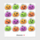 These cute little colourful Halloween pumpkins set of stickers are perfect for Halloween party favours and favour bags enclosures. You can choose between matte white or glossy transparent vinyl; please note that white ink is not printed on either substrate. The stickers removable, low-tack adhesive leaves no sticky residue, they are printed with solvent inks that are fade-proof, water-proof and scratch-resistant, making them compatible with and ideal for decorating water bottles, helmets, cars, skateboards, bikes, laptops, phones, tablets, binders, notebooks, journals, lockers, water bottles and more! They are available in 6 different sizes, there is a 0.125" border around each sticker to help it stand out against any background! © Julie McIver