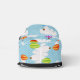 Multi-coloured hot air balloons in cloudy dotty blue sky on crossbody bag.