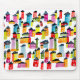 Cute colourful fun design of houses watercolor illustration design. Happy and childlike design with bold bright colours.
