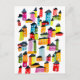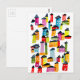 Cute colourful houses watercolor art postcard