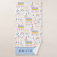 Personalise this sweet Llama Rainbow Towel for a kids bath or a new baby bathroom. Customise with the name of your choice. This boys or girls nursery bath towel features a cute and trendy llama and rainbow pattern in colourful pastel shades of blue, pink, and yellow.