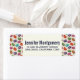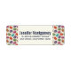 Address label with a cute pattern of macarons in many different colours with a faint polka dot pattern behind.