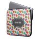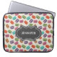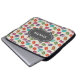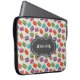 Personalised laptop sleeve with a cute pattern of macarons in many different colours with a faint polka dot pattern behind.