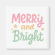 Modern Christmas magnet featuring a cute and fun design with "Merry and Bright" in cheerful pastel pink and green casual lettering.