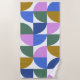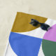 This stylish beach towel features a modern geometric pattern of shapes in green, violet pink, goldenrod, and blue.