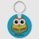 Cute and colourful owl on a blue personalised keychain.  Add your text.