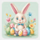 Cute Colourful Pastel Easter Bunny Square Stickers