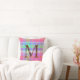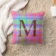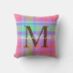 Cute Colourful Plaid Stripes Pattern Monogram Throw Pillow