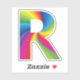 This vibrant sticker featuring a cheerful rainbow design is perfect for kids whose names begin with the letter "R." Its colourful appeal makes it an ideal accessory for personalising school supplies, arts and crafts, or room décor, adding a fun and engaging touch to any child's belongings.