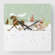 Cute colourful retro style christmas illustration with santa and his reindeer rushing true the snow.